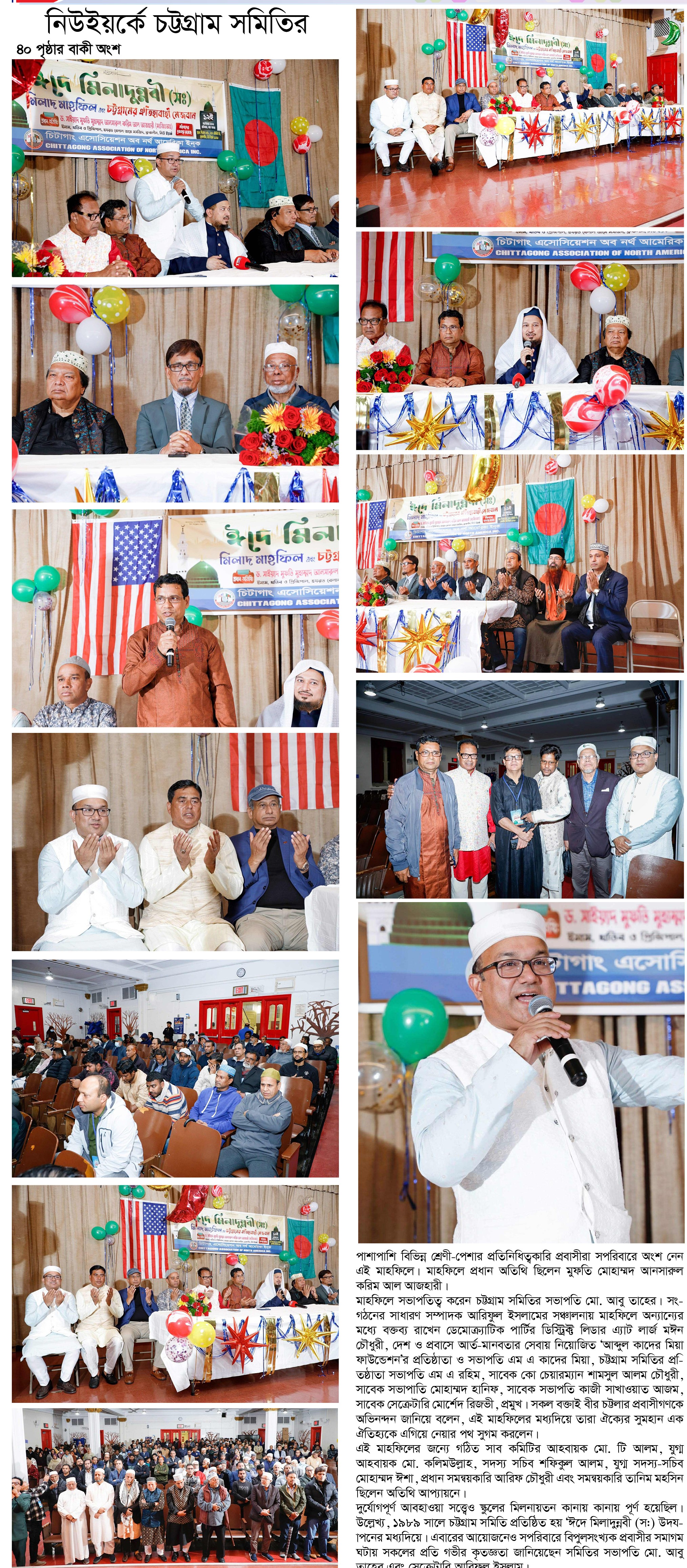 পবিত্র ঈদে মিলাদুন্নবী (স:) উপলক্ষে গত ১২ অক্টোবর, রোববার নিউইয়র্ক সিটির ব্রুকলিনে পাবলিক স্কুল-১৭৯ এর মিলনায়তনে উত্তর আমেরিকাস্থ চট্টগ্রাম সমিতির উদ্যোগে বিশাল এক দোয়া মাহফিল এবং চট্টগ্রামের ঐতিহ্যবাহী ‘মেজবান’ অনুষ্ঠিত হয়। যুক্তরাষ্ট্রে বসবাসরত বীর চট্টলার পাশাপাশি বিভিন্ন শ্রেণী-পেশার প্রতিনিধিত্বকারি প্রবাসীরা সপরিবারে অংশ নেন এই মাহফিলে। মাহফিলে প্রধান অতিথি ছিলেন মুফতি মোহাম্মদ আনসারুল করিম আল আজহারী।